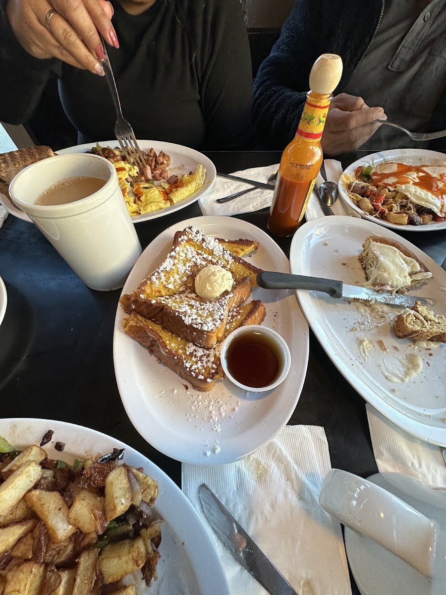 I have lived in Oakley for years, can’t believe this is the first time here! Doesn’t look much from the outside but the inside looks pretty cool. Looks like an old diner with your normal adds on the wall, old Route 66 placard and a mural painted on one wall. Love the vibe, the smells of good food and the loud sound of the hustle and bustle of the kitchen! The food was amazingly delicious. I think I tried everyone’s food on the table. The chicken and waffles, Buffalo wings, French toast, and Eggs Benedict with sweet potato fries. Those bacon that came with my French toast were nice and crunchy and they were not one of those skinny bacons. The staff were super nice and very attentive. And their nice smiles were an added bonus! They kept the refills going. I didn’t know what to expect about the price but I think it was standard. Oh FYI, their hours of operation is very limited so if you want to come they’re only open until 1pm and it gets crowded. So be prepared to wait a little.
